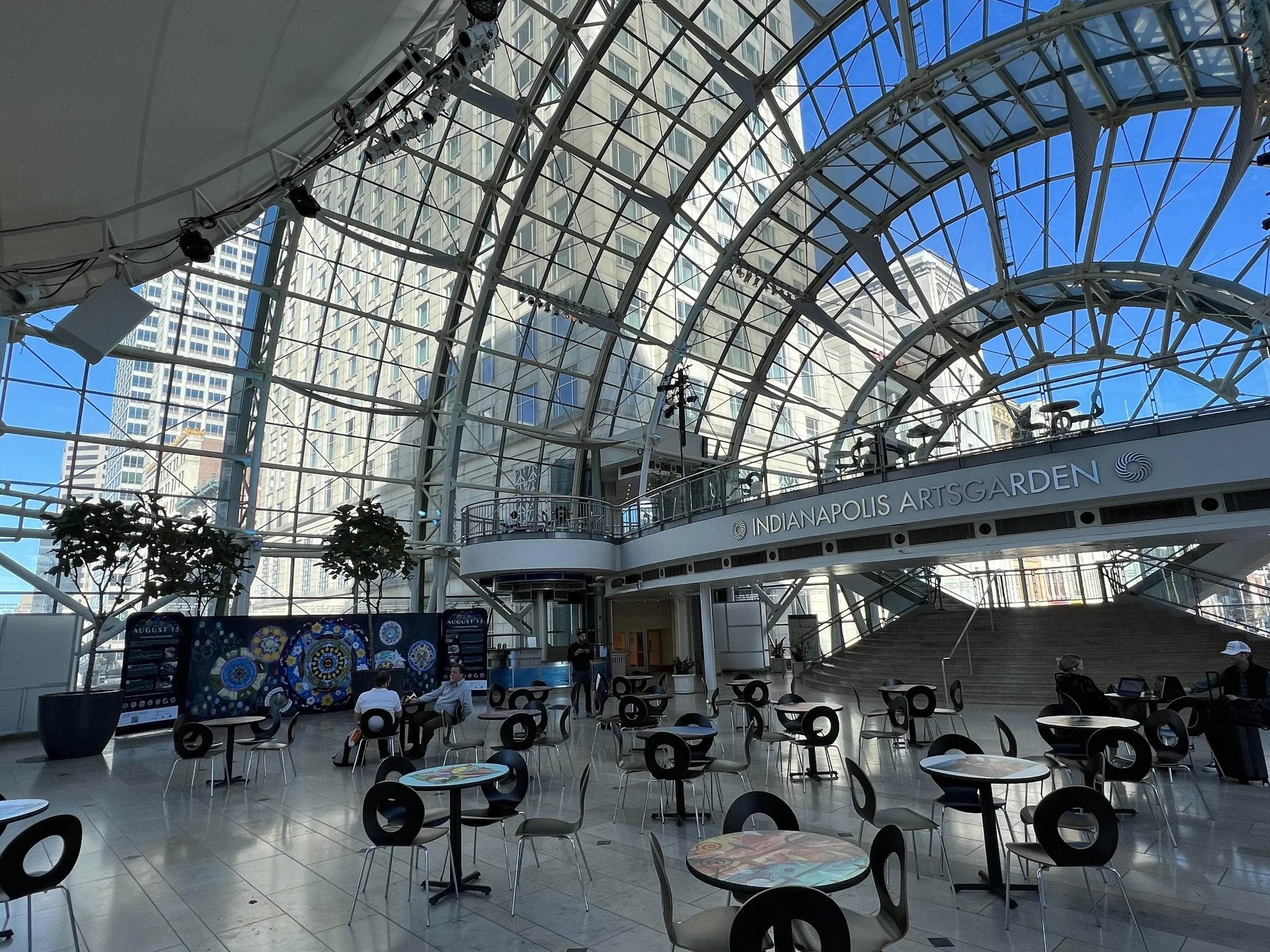 After surviving this trauma, thousands of Afghan evacuees found safe haven at Indiana’s Camp Atterbury. Lifelong friends, artists Zainab Ahmadi and Fawzia Abdaly, were among them. In Afghanistan, their lives were threatened by the Taliban due to their advocacy of women’s empowerment. While at Camp Atterbury, art therapy group Art of the Soul created a safe space for evacuees to reflect freely. With muralist Tiffany Black, they created this work of art. August 15 represents their message to the world.